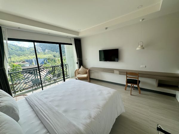 Step into a world of contemporary elegance and natural wonder with our 29 sqm Deluxe Rooms at Keereen Boutique Resort. These well-appointed rooms are designed to provide a luxurious and comfortable retreat for our discerning guests while offering breathtaking vistas of the Northern Facing Limestone Mountains of Aonang and our enchanting infinity edge swimming pool.